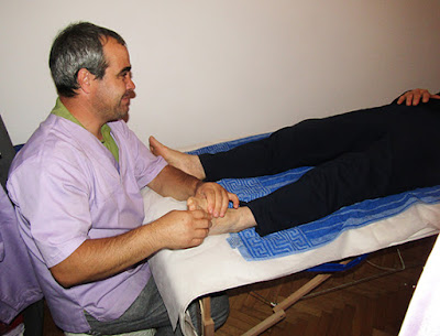 – Palpabil, căutând inele la coloană. Coloana răspunde de fiecare organ în parte, fiecare inel are legătură cu un organ. Apoi, în funcţie de ce afecţiuni găsesc, recomand procedurile: şedinţe de masaj sau de fizioterapie. Orice afecţiune pleacă de la coloană. Din cauza deformării coloanei poate să apară ateroscreloza care blochează oxigenarea către creier şi atunci, automat, apar pulsul ridicat, stările de panică, tensiunea arterială, circulaţie sangvuină deficitară şi multe alte probleme, inclusiv iritaţii de colon, hemoroizi. În talpă ne putem da seama, prin presări, ce afecţiuni sunt. De exemplu, pentru organele genitale este călcâiul cu zona maleolelor şi aşa mai departe.
